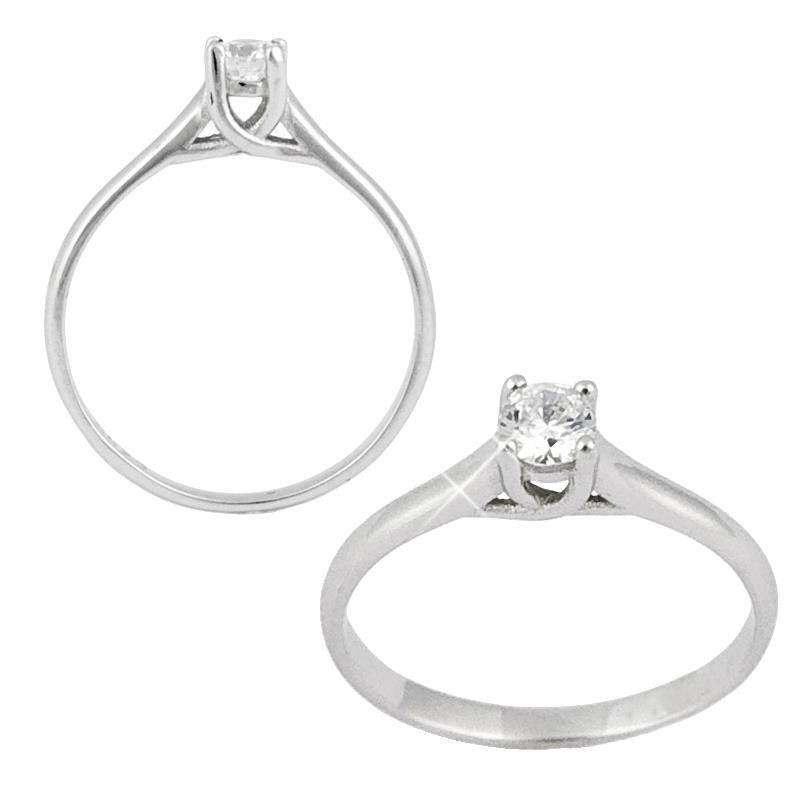 Una joya de compromiso elegante y bella gracias a su montaje en cuatro garras que sujetan una piedra talla brillante de gran calidad y permiten la entrada de luz por todas las facetas del diamante.
