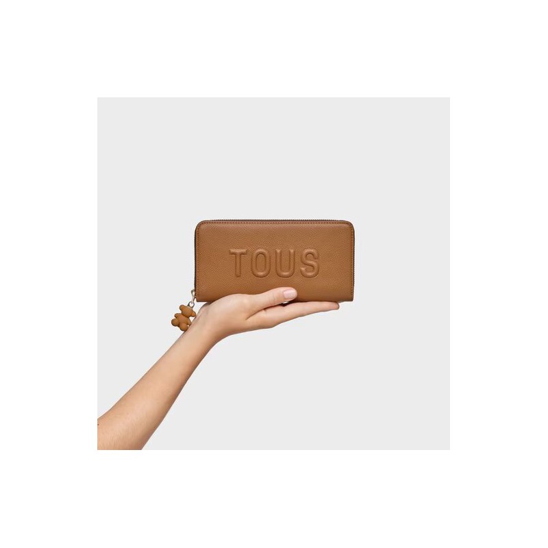 Billetera TOUS para mujer de la colección Brenda fabricada en poliuretano color camel. Esta atractiva billetera cuenta con cierre exterior mediante cremallera. En su interior posee 2 compartimentos abiertos para billetes y otro con cierre de cremallera para monedas y 8 ranuras para tarjetas.