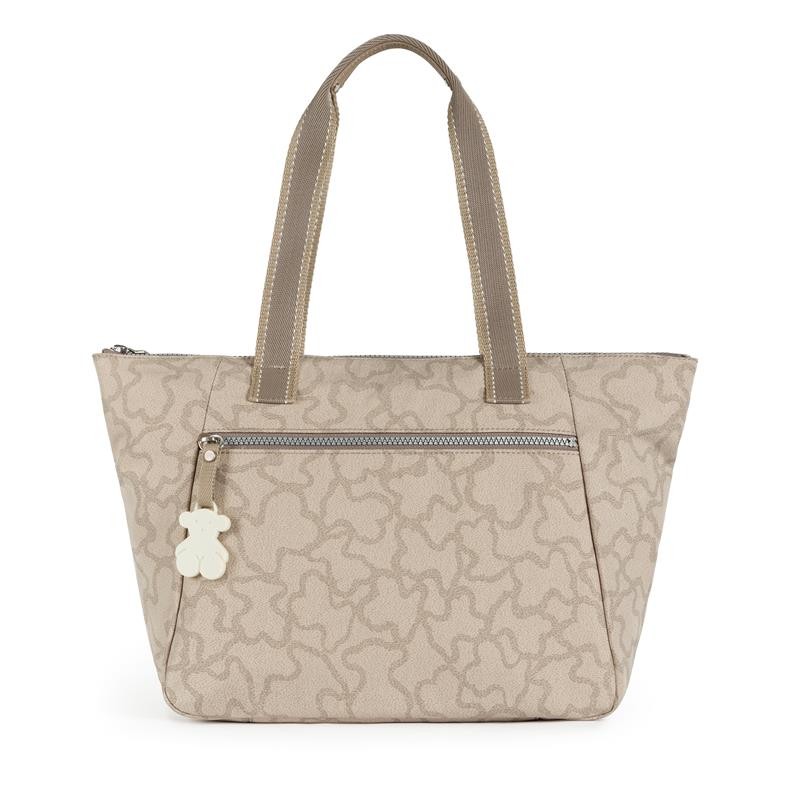 Capazo mediano Tous Kaos New Colores realizado en nylon color beige. Su original diseño más grande de la parte superior, da un toque sofisticado a este bolso. Las dos asas de hombro y dos bolsillos exteriores convierten a este complemento en el accesorio perfecto para tu día a día.