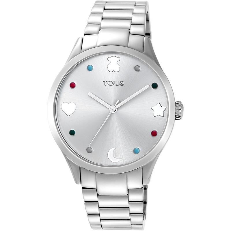 Este reloj Tous será tu mejor aliado con todos tus outfits. Su diseño con total look plateado crean un estilo elegante y sofisticado. El toque de color lo añaden unos índices redondos en tonos azules que junto corazones y estrellas, hacen de este accesorio el complemento perfecto.
