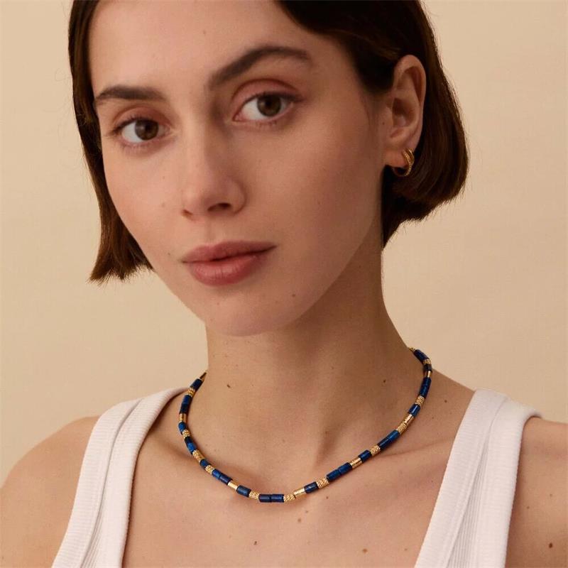 Collar Corto Agatha Paris Petra Baño Oro y Lapislázuli 02680218-226-TU