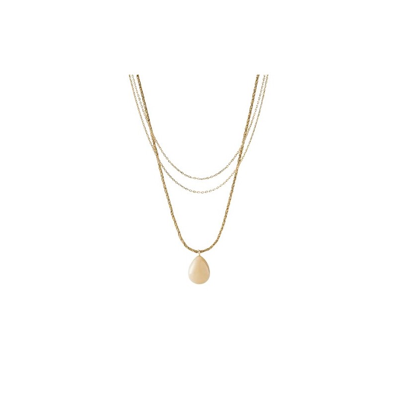 Collar Agatha Paris para mujer de la colección Madeleine de diseño tipo Midi fabricado en latón bañado en oro amarillo compuesto por 3 cadenas que dan lugar a un colgante en forma de gota en resina color marfil. Su cierre es de mosquetón ajustable mediante cadena extensible.
