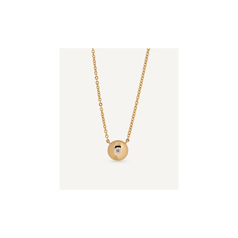 Collar vidal&Vidal Mesme para mujer fabricado en aleación de metales bañados en oro amarillo compuesto por una fina cadena que da lugar a un colgante circular con una circonita central. Su cierre es de mosquetón ajustable mediante cadena extensible.