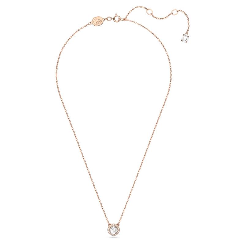 Gargantilla Swarovski para mujer de la colección Constella fabricado en aleación de metales bañados en oro rosa formado por una atractiva cadena plateada que da lugar a un colgante compuesto por un cristal brillante en talla circular. Su cierre es de mosquetón ajustable.