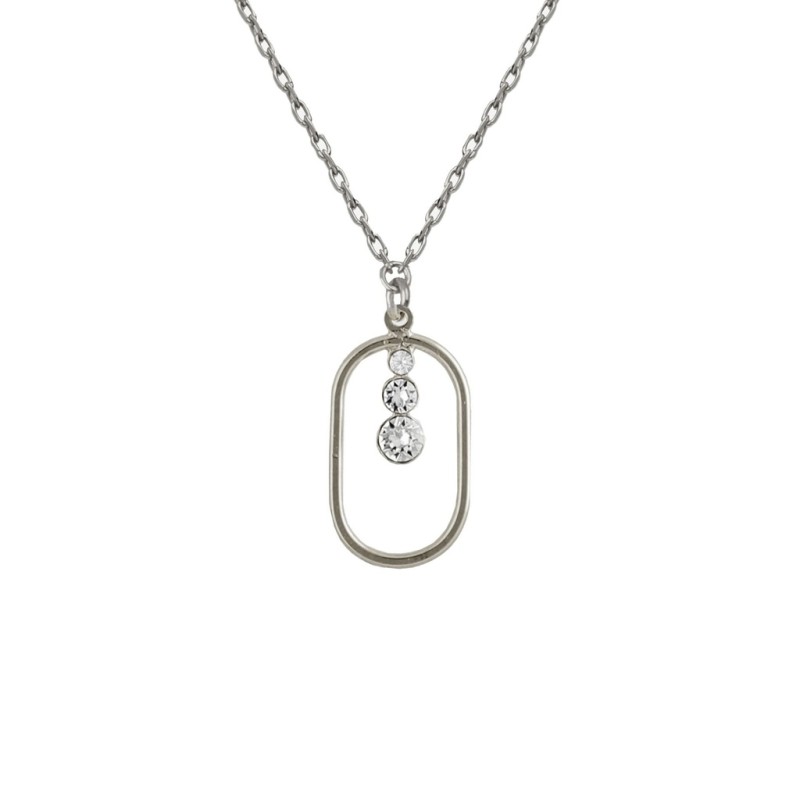 Collar Corto Victoria Cruz para mujer modelo Buenos Días fabricado en plata bañada en rodio compuesto por cadena que da lugar a un colgante ovalado con 3 cristales circulares blancos. Su cierre es de mosquetón ajustable mediante cadena extensible.
