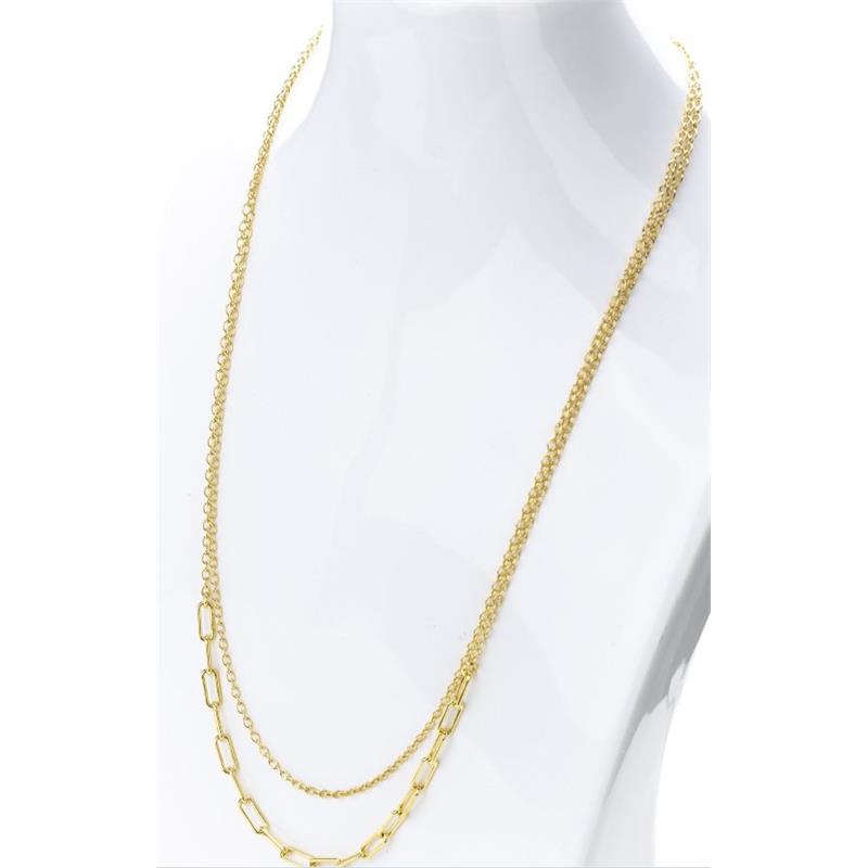 Collar Itemporality para mujer de la colección Anello fabricado en plata bañada en oro amarillo compuesto por una doble cadena, una de ellas formada por eslabones de nudo y la otra por eslabones rectangulares. Su cierre es de mosquetón.