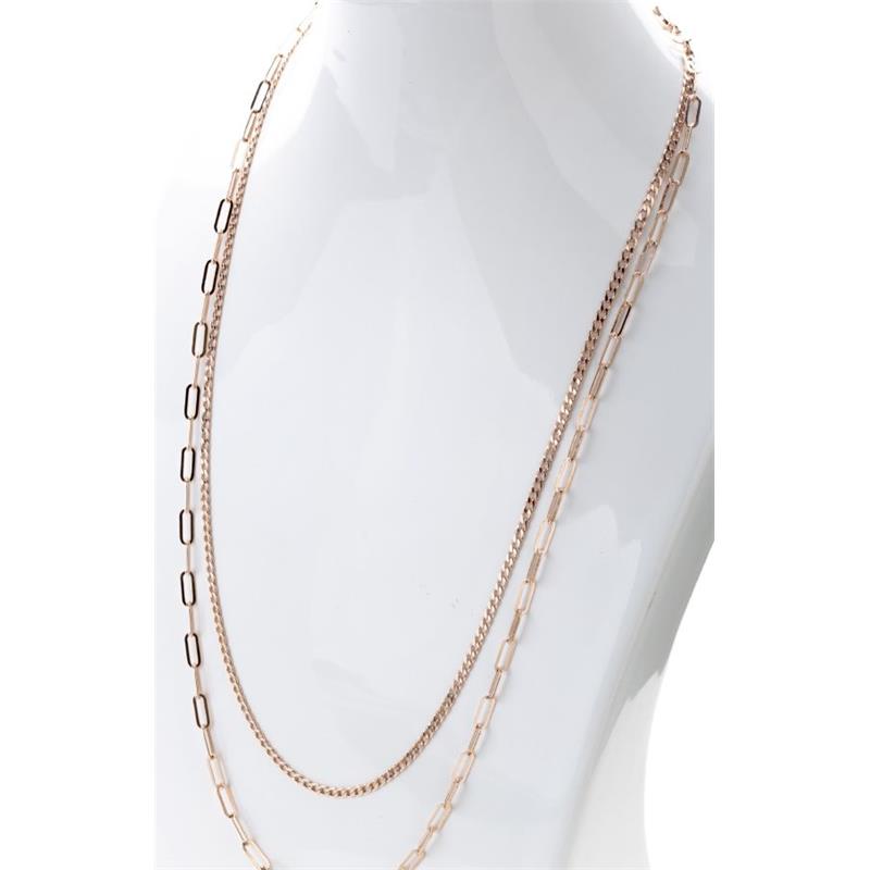 Collar Itemporality Anello Doble Cadena Plata Baño Rosado Eslabones Diamante y Eslabones Ovalados SNL-300-127-UU
