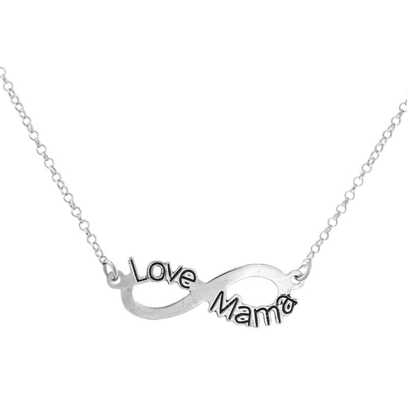 Una gargantilla de plata de nuestra marca exclusiva de Serrano Joyeros. Su diseño con cadena y símbolo de infinito hacen de esta joya un complemento perfecto para lucir con todos tus looks. Una emotiva frase LOVE MAMA convierte este accesorio en un regalo perfecto.