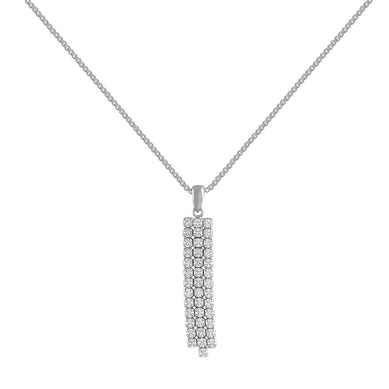 Gargantilla Itemporality para mujer de la colección Wedding fabricada en plata de primera ley compuesta por una elegante y atractiva cadena que da lugar a uncolgante rectangular compuesto por 3 hileras de circonitas blancas. Su cierre es de mosquetón ajustable.