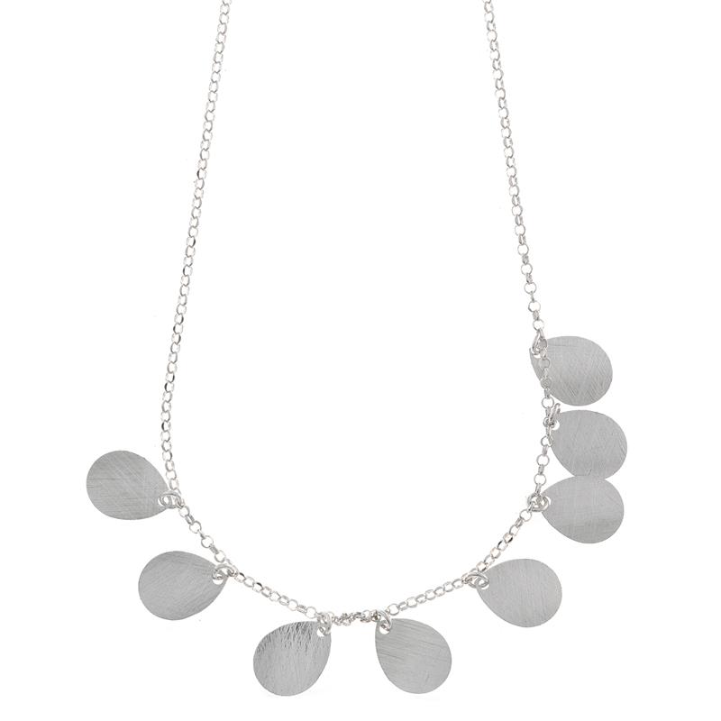 Gargantilla Salvatore para mujer fabricada en plata bañada en rodio compuesta por una atractiva cadena que cuenta en su parte central con 8 colgantes en forma de peras rodiadas. Cuenta con cierre de mosquetón ajustable.