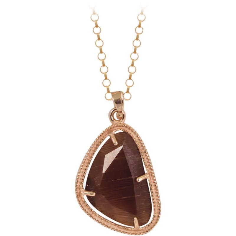 Colgante Plata Rose Piedra Marron ojo de tigre fashion joya
