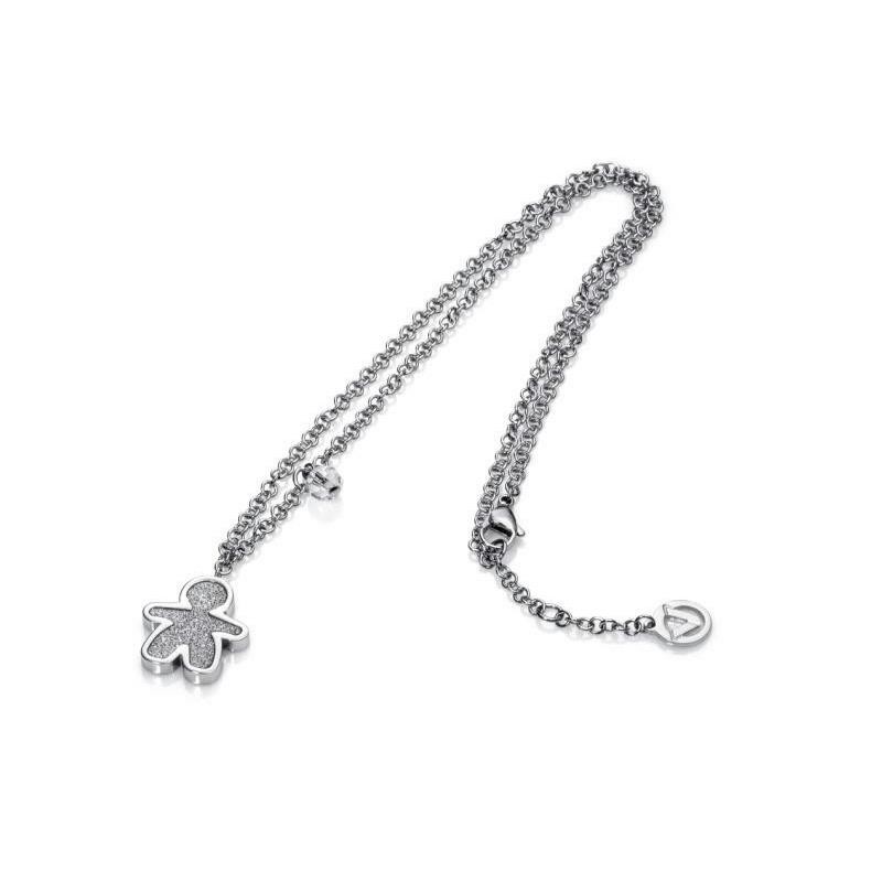 Gargantilla Viceroy Fashion para mujer fabricado en acero inoxidable plateado, se compne de una fina cadena compuesta de pequeños eslabones bañados en plata con una longitud de 45 cm, da lugar en su zona central a uncolgante en forma de niño bañado en purpurina que dará brillo y originalidad a tus looks diarios.