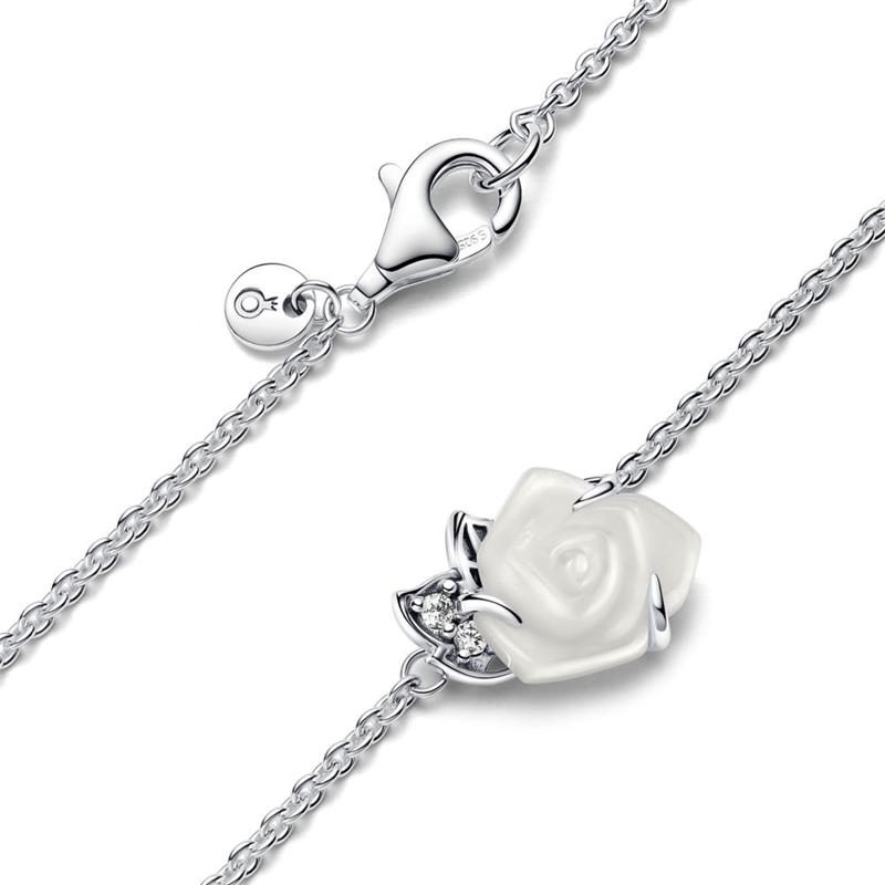 Gargantilla Pandora Rosa Blanca Floreciendo para mujer de la colección Día de la Madre 2024 fabricada en plata de primera ley compuesta por una elegante cadena que da lugar a un colgante en forma de Rosa Blanca Floreciendo. Su cierre es de mosquetón.
