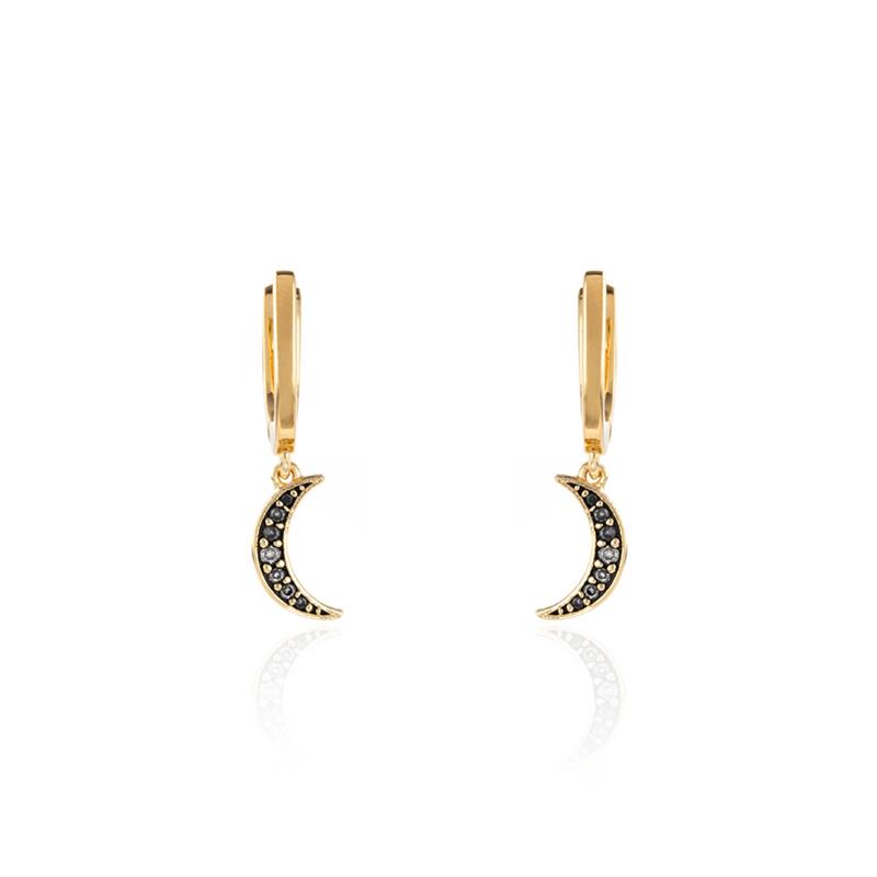 Pendientes Agatha París para mujer de la colección Sara Carbonero modelo Nova. Estamos ante unos elegantes y atractivos pendientes compuestos por un aro con cierre de criolla del cual cuelga una pieza en forma de media luna compuesta por circonitas negras.