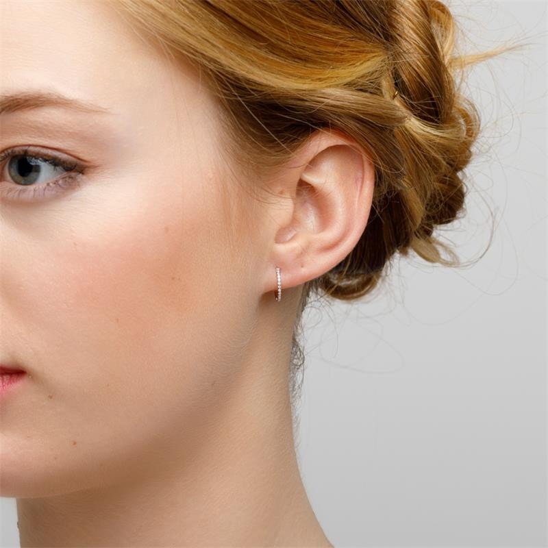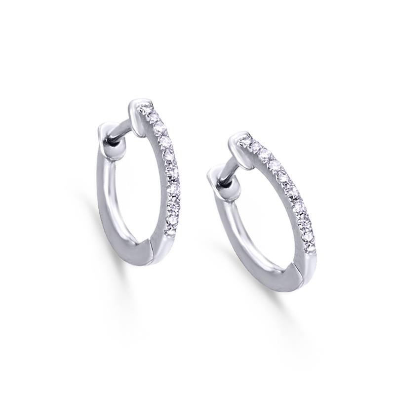 Pendientes Le Carré para mujer de oro blanco de 18 kt en forma de aro cubiertos con diamantes de 0,060 ct.Unos originales pendientes por su forma y situación de los diamantes que te harán lucir espléndida y brillante.