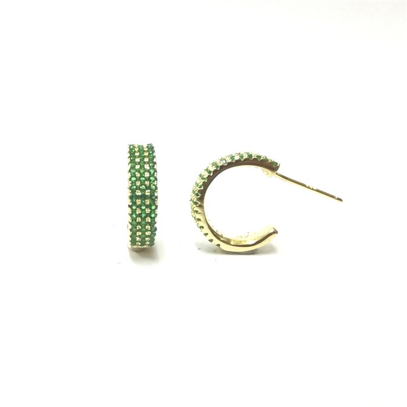Pendientes Itemporality para mujer de la colección Tennis modelo Serena en forma de aro fabricados en plata bañada en oro con una triple hilera formada por circonitas en color verde esmeralda. Su cierre es de presión.