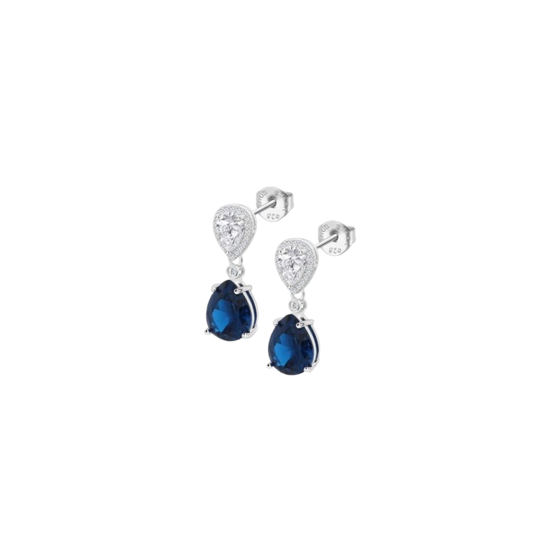 Pendientes Lotus Silver para mujer de la colección Colors fabricados en plata de diseño colgante compuestos por una circonita blanca en forma de lágrma de la cula cuelga otra en color azul zafiro engastada en 4 garras. Su cierre es de presión.