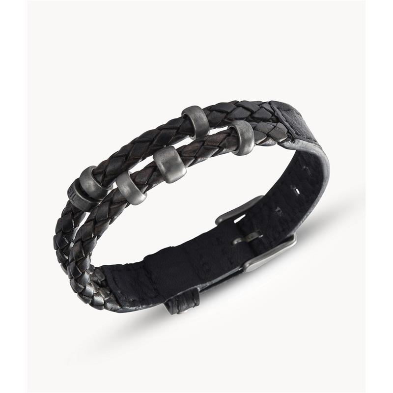 Pulsera Fossil Vintage Casual Hombre Cuero Negro y Acero Inoxidable JF85460040