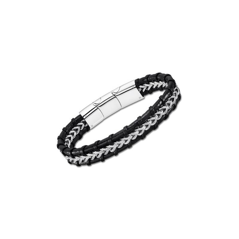 Pulsera Lotus Style Acero Inoxidable y Cuero Negro Hombre LS2198-2/1