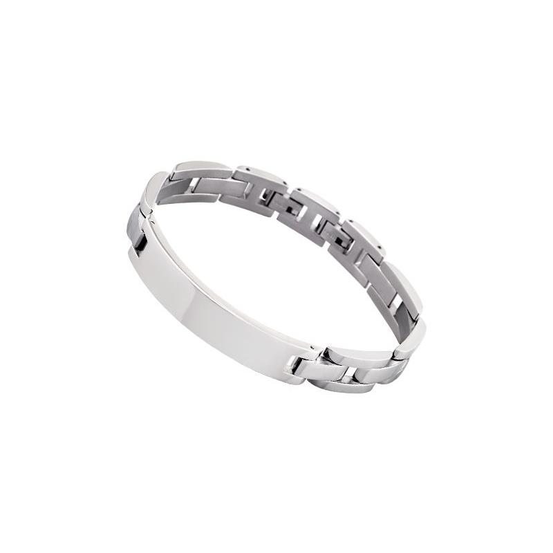 Pulsera Lotus Style para hombre de la colección Men In Black fabricada en acero inoxidable plateado. Se trata de una pulsera de diseño original y atractivo con formada por una correa de elegantes eslabones que dan lugar a una placa rectangular ideal para realizar grabados. su cierre es de broche.