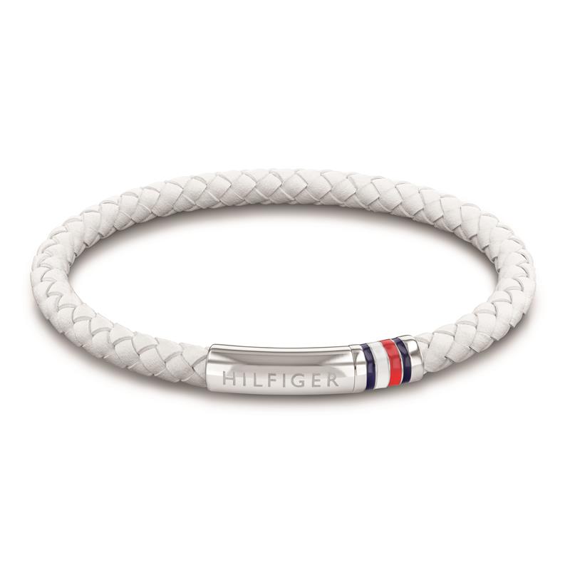 Pulsera Tommy Hilfiger Hombre Cuero Blanco Trenzado y Acero Inoxidable 2790405
