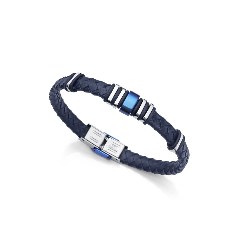 Pulsera Viceroy Fashion Magnum Piel Trenzada Azul y Acero Hombre 6132P01013