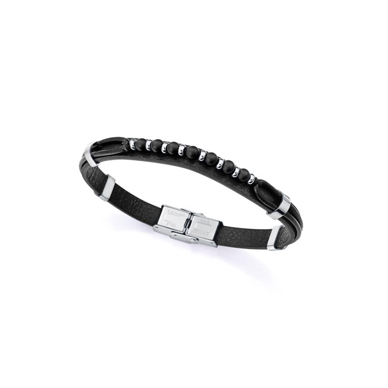 Pulsera Viceroy Fashion Piel Negra, Acero y Piedras Negras Hombre 15169P01010