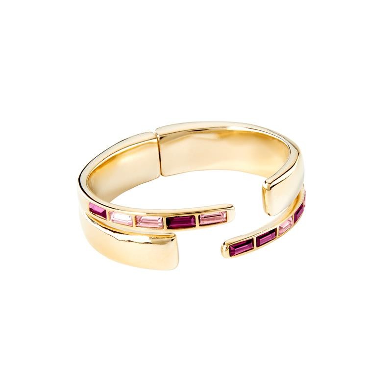 Pulsera Nightbird Wrap de UNO de 50 bañada en oro. Sencilla pero original y sofisticada, así se podría definir a esta pulsera rígida y abierta adornada a cristales Swarovski rojos rectangulares en sus extremos. Una pulsera ideal para ir a la última en tu día a día.