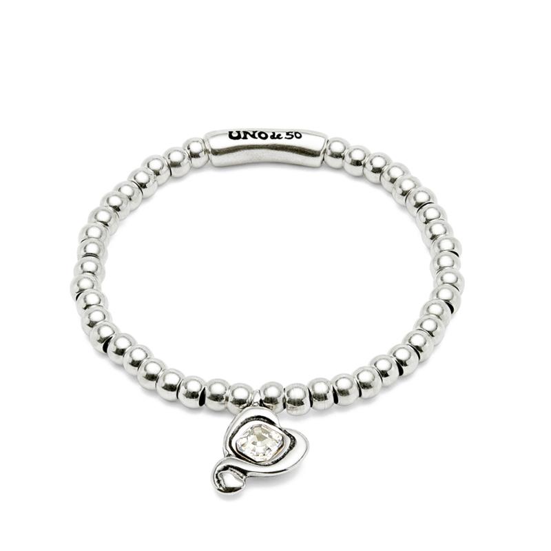Pulsera UNOde50 Ser Expresiva Bolitas Baño Plata y Corazón Cristal Blanco Facetado PUL2514CRSMTL0L
