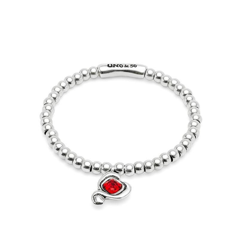 Pulsera UNOde50 Ser Expresiva Bolitas Baño Plata y Corazón Cristal Rojo Facetado PUL2514ROJMTL0M