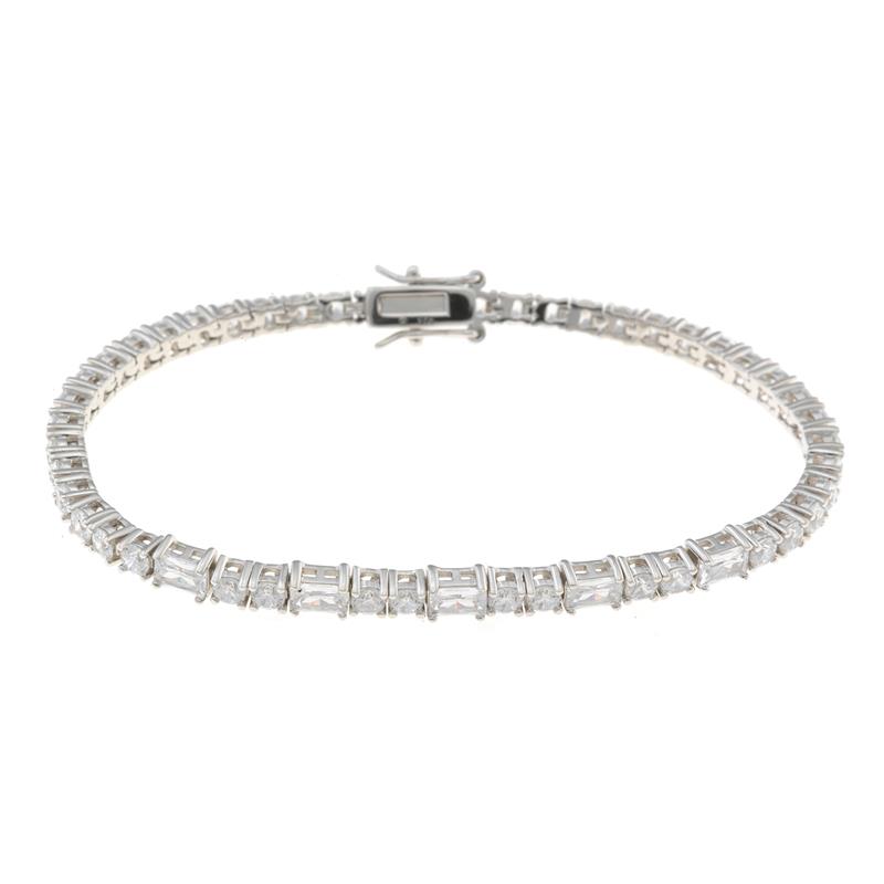 Pulsera Salvatore Mujer Plata Baño Rodio, Cristales Ovalados y Circonitas Blancas