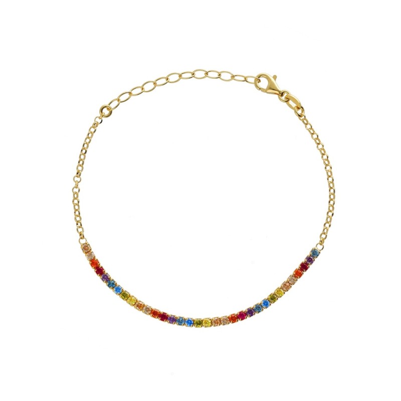 Pulsera Victoria Cruz para mujer de la colección Dolce Vita de diseño tipo Riviere fabricado en plata bañada en oro amarillo compuesta por cristales multicolor. Su cierre es de mosquetón ajustable mediante cadena extensible.